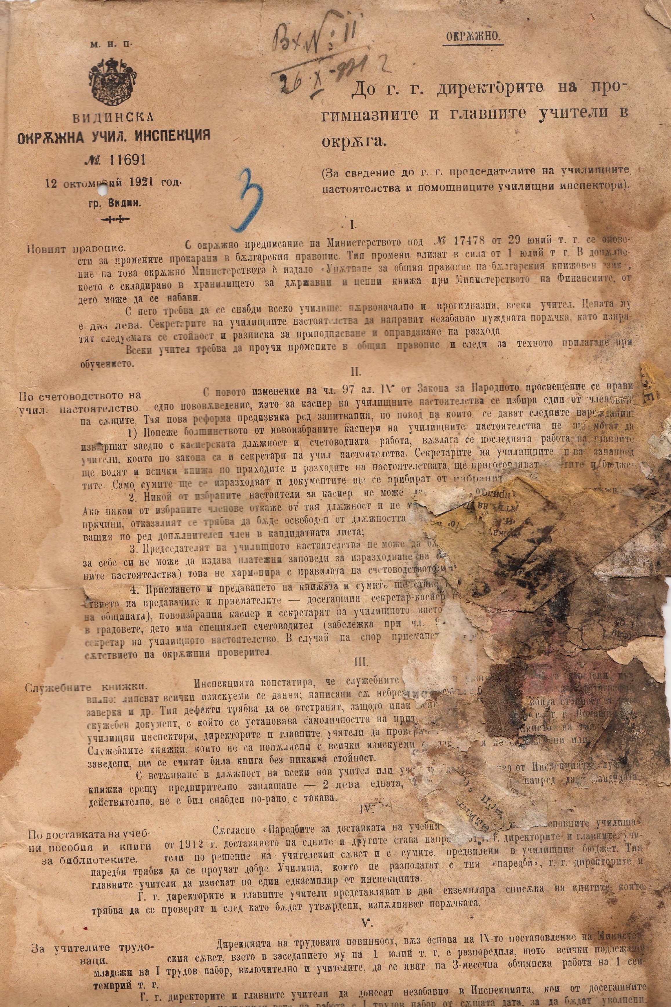 Видинска Окръжна училищна инспекция N 11691 / 12.10.1921 г.