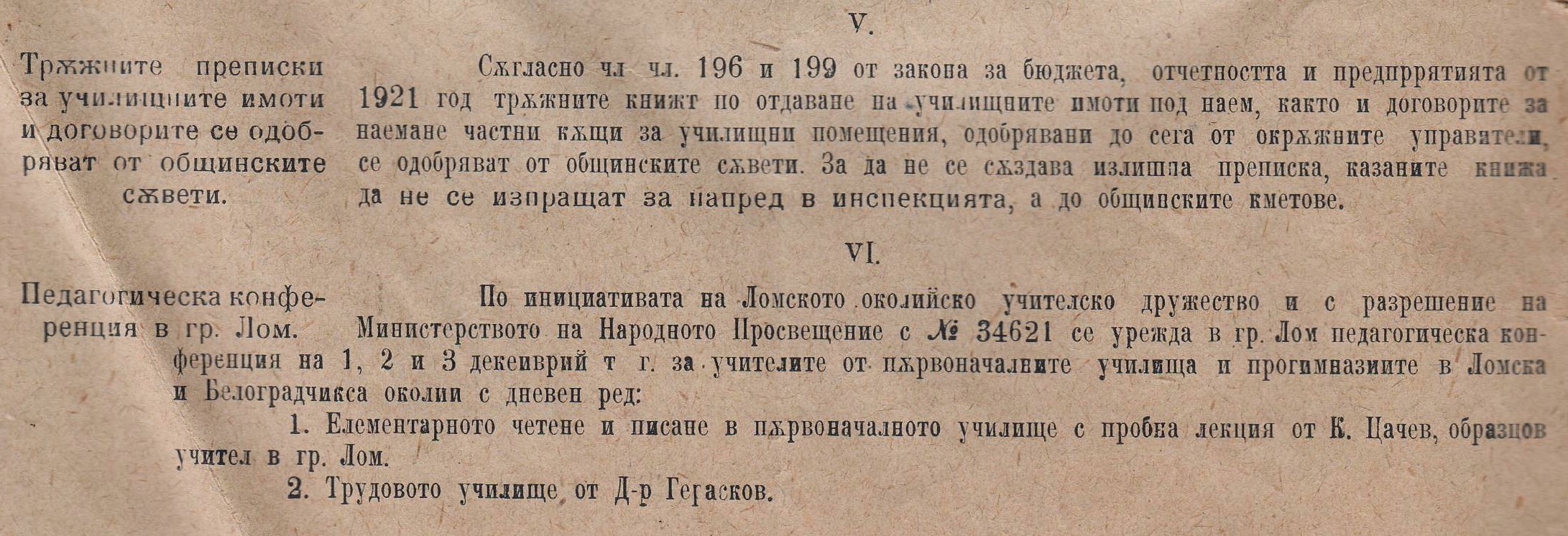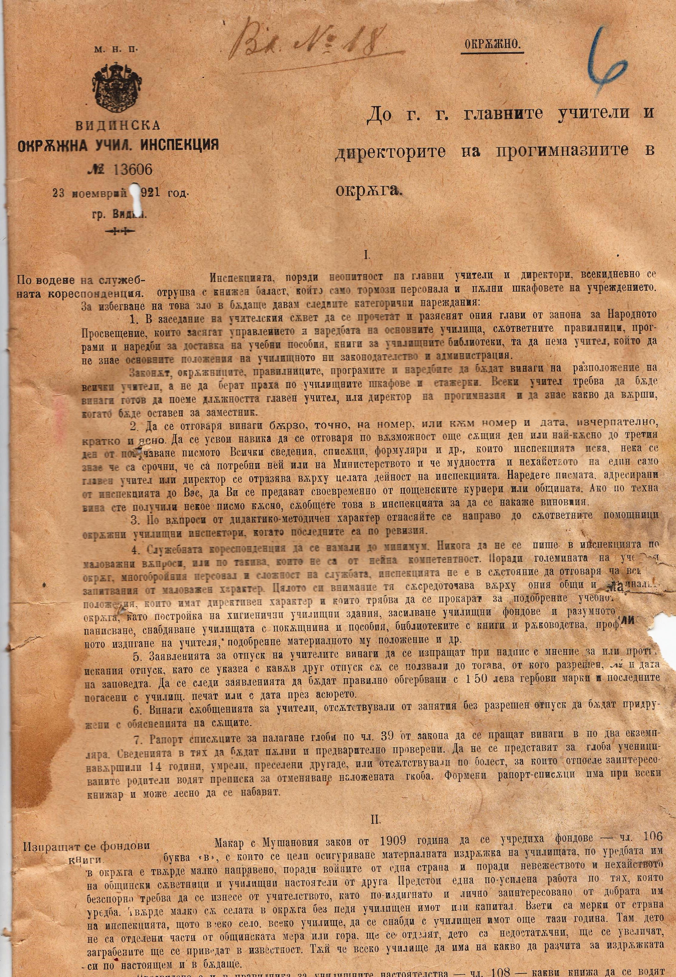 Видинска Окръжна училищна инспекция N 13606 / 23.11.1921 г.