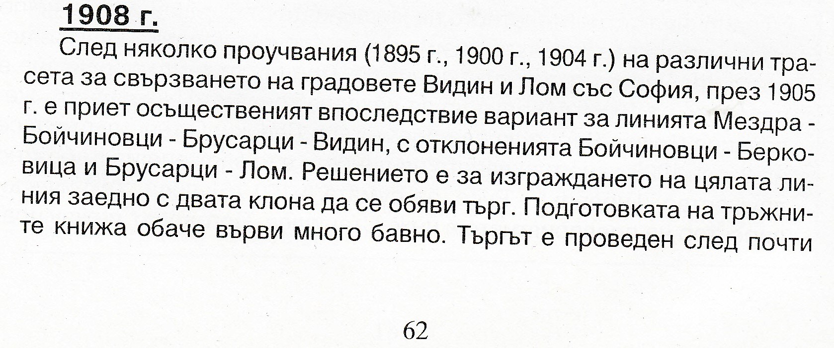 В книгата на Димитър Деянов “ Железопътната мрежа в България 1866 – 1975 г. „- 2005 г. той пеше: за 1908 г.
