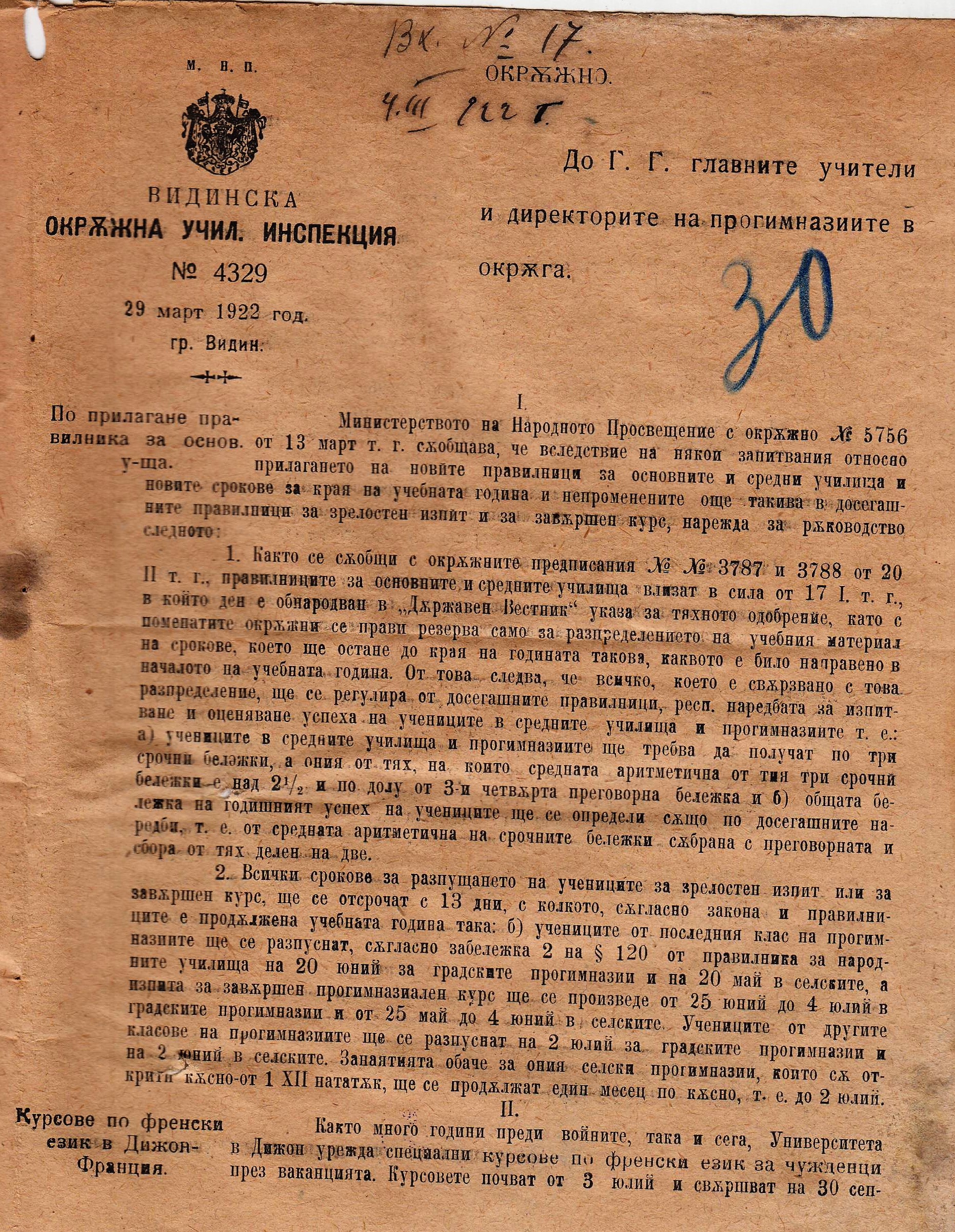 До г. г. главните учители и директори на прогимназиите в окръга.
