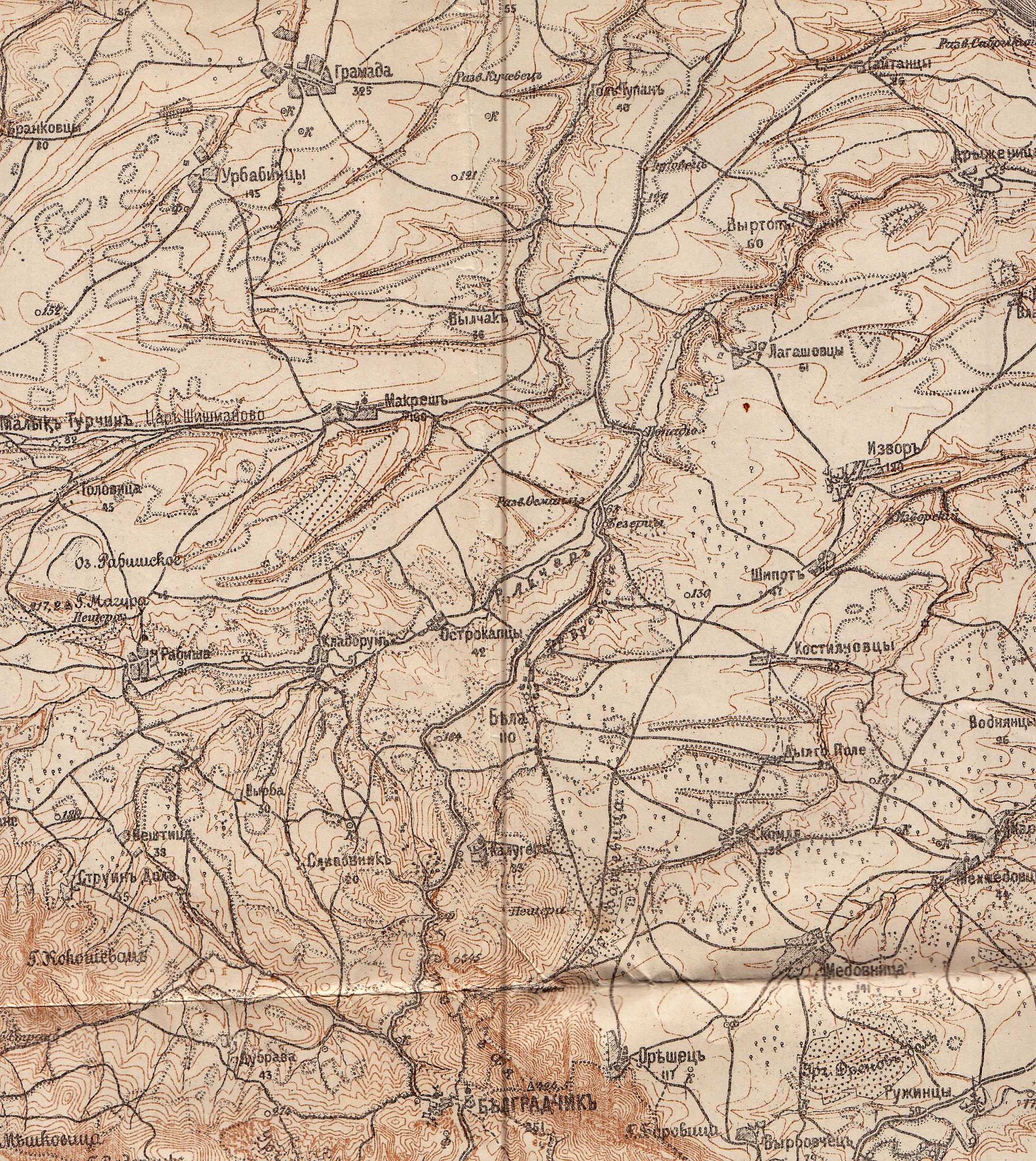 Този картен лист IV.2 – Видин, Белоградчик растоянията са във версти и предполагам е препечатан от Руски карти, намерих го с други карти от 1910 година. Има и картен лист на Лом Паланка IV.3 – Военно – картографически институт София 1910 г.