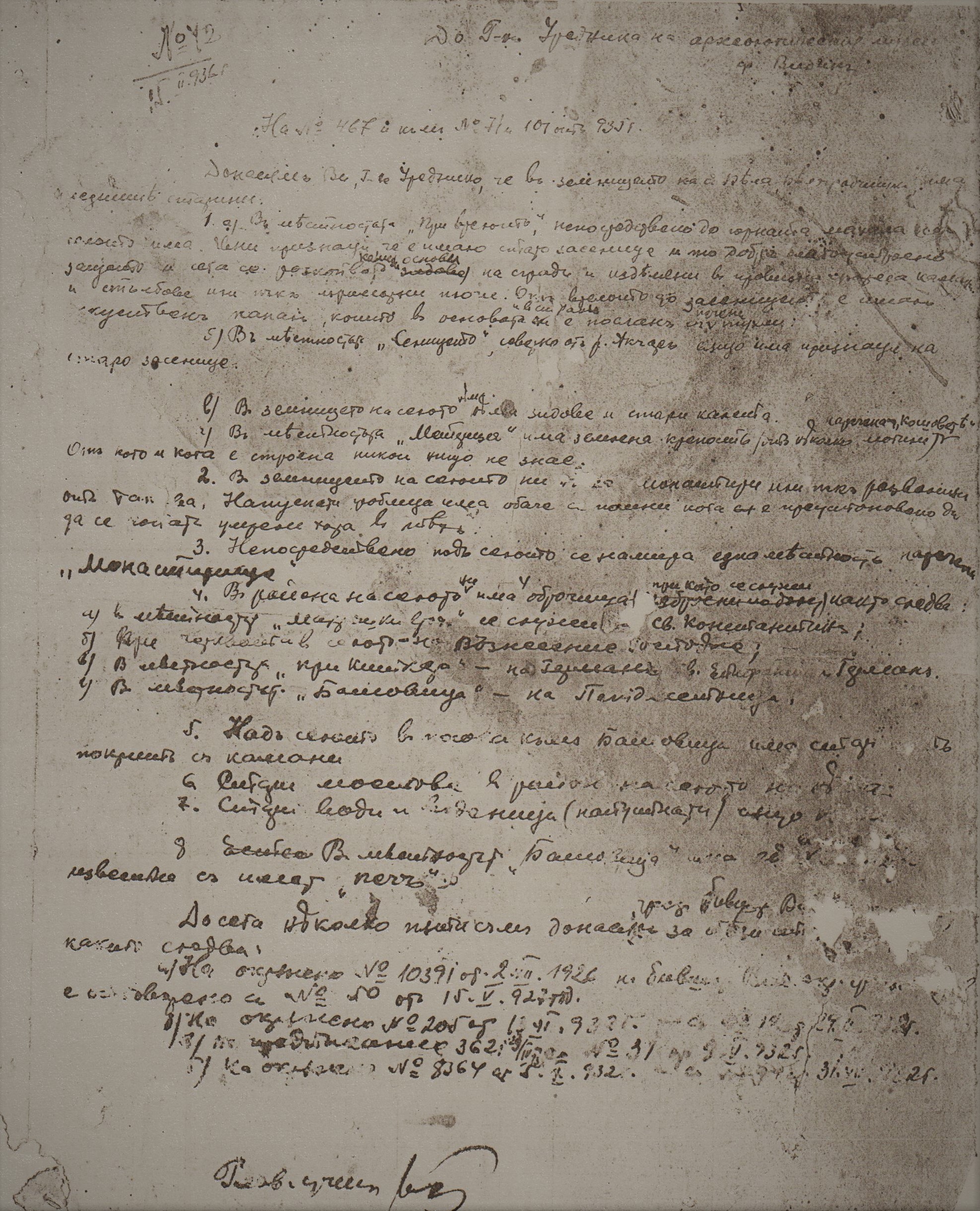 Този документ е една чернова на документа, който е изпратен до археологическия музей във Видин.