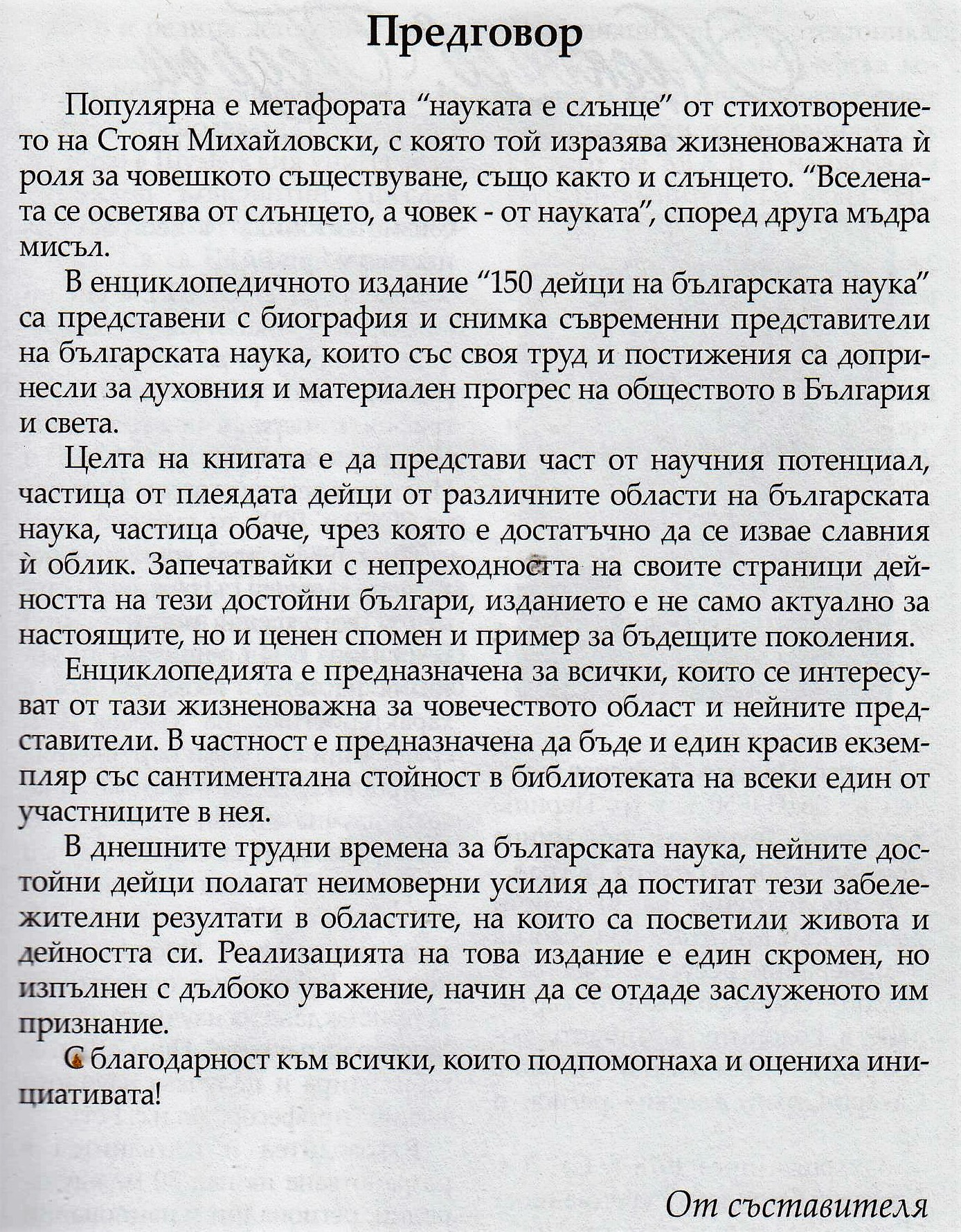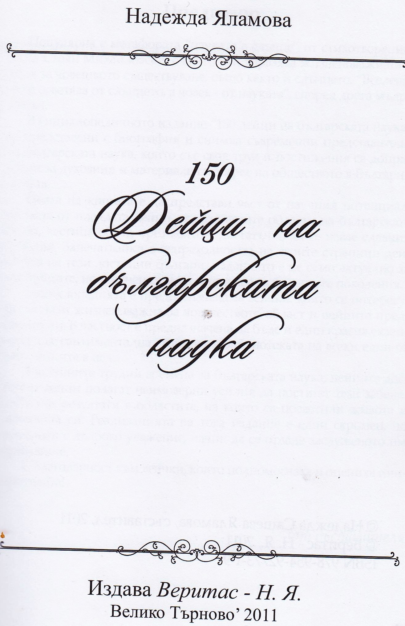 През 2011 година излиза от печат едно енциклопедично издание: „150 дейци на Българската наука.“ – съставител :Надежда Яламова.
