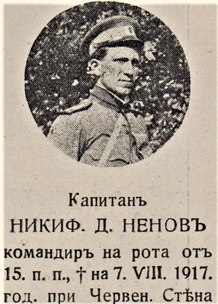 Капитан НИКИФ.Д.НЕНОВ командир на рота от 15.п.п., на 07.-08.1917 год. при Червен. Стена.