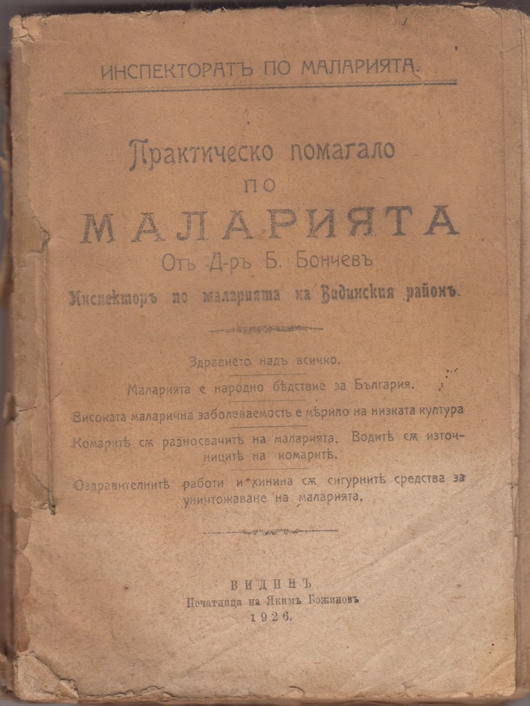 Практическо помагало по МАЛАРИЯТА от Д-р Бърни Бончев – инспектор по маларията на Видински район – 1924 година.