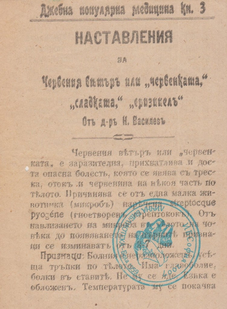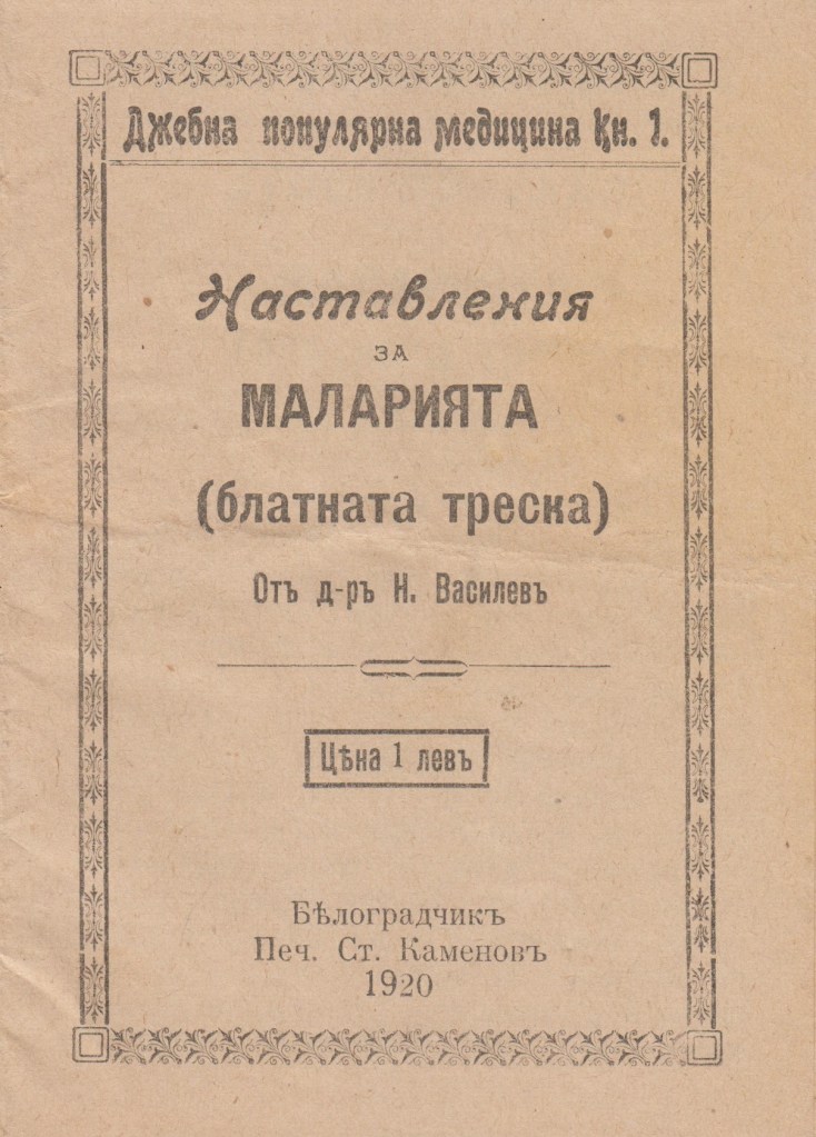 Д-р Никола Василев завършва медицина в гр. Лозана, Швейцария. Веднага след завършването е мобилизиран и участва в Първата световна война, като дружинен лекар в 42 пехотен полк. Награден е с кръст за храброст. По собствено желание работи във Френска болница лекувайки българските войници оставени в заложничество. След войната работи във военната болница в гр.Враца, като Околийски лекар в гр.Белоградчик и като ординатор в Александровска болница. През 1920 година Д-р Василев е околийски лекар в гр.Белоградчик и като такъв издава няколко брошурки в помощ на учениците и гражданите на гр.Белоградчик. Те са отпечатани в печатницата на Стамен Каменов. Издадени са под заглавието „Джебна популярна медицина “ N 1 и т.н. Не знам колко такива брошурки са издадени, но сега ще ви представя няколко от тях.