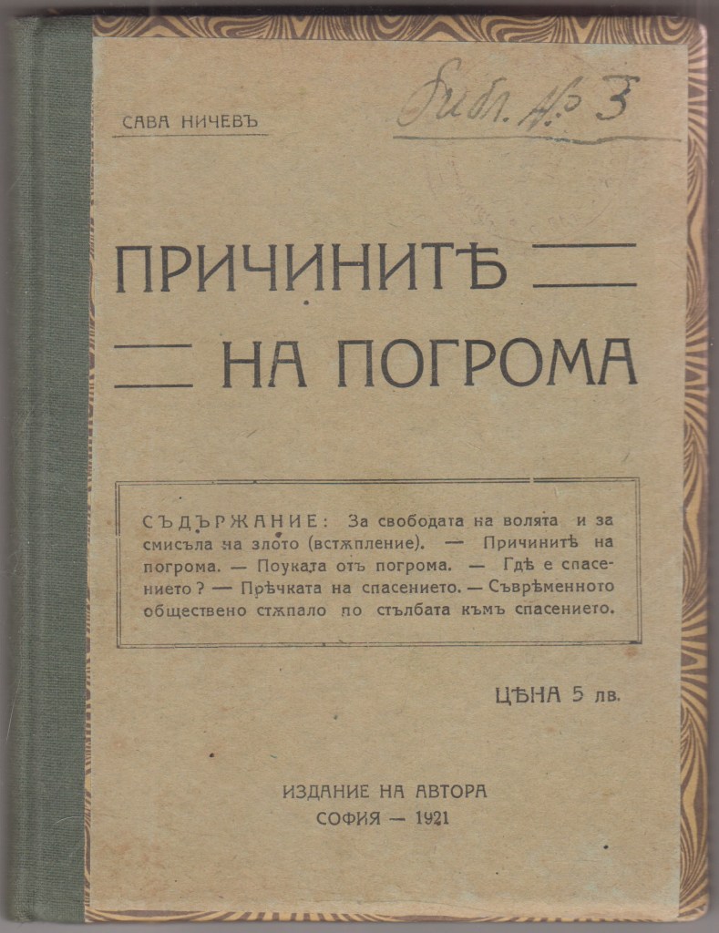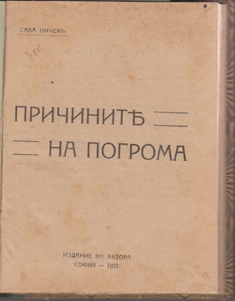 „Причините за погрома“ Сава Ничев 1921 година, издание на автора.