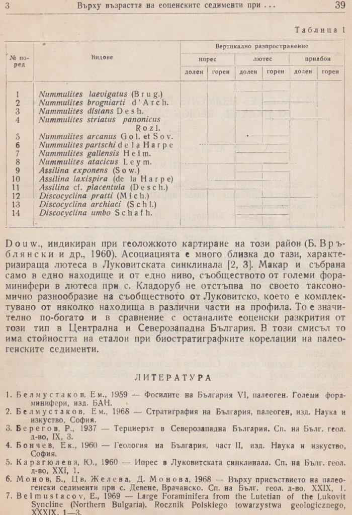 „Върху възрастта на еоценските седименти при с.Кладоруб, Белоградчишко.“ К.Аладжова – Хрисчева – 1972 г.