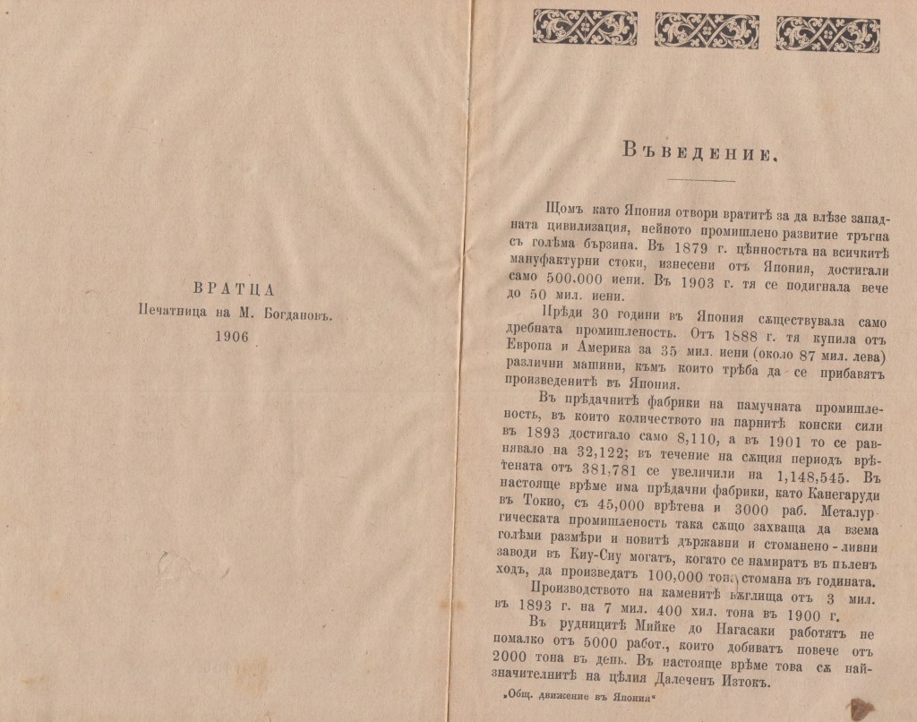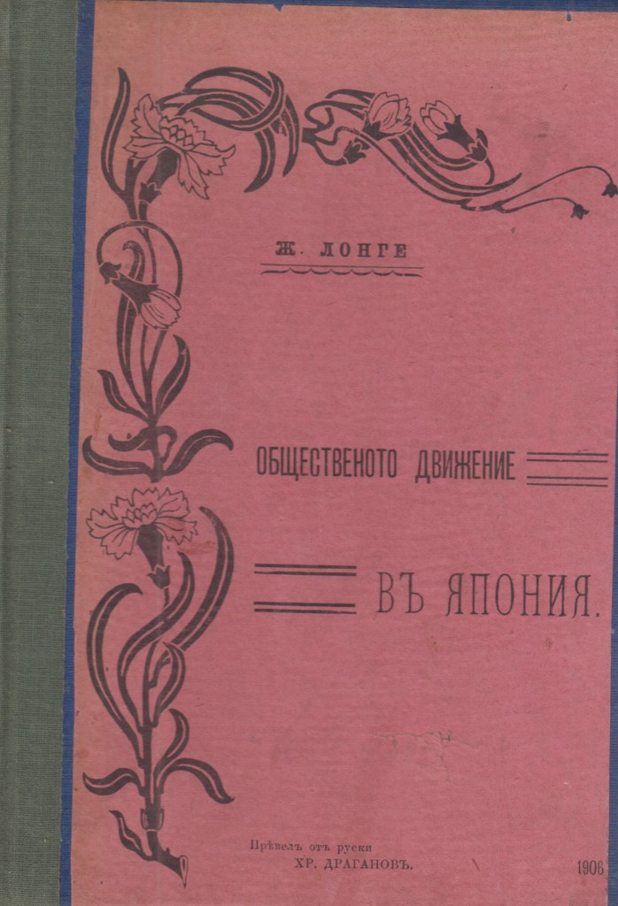 Книгата: Общественото движение в ЯПОНИЯ, Ж.Лонге, 1906 г. превод от руски Хр.Драганов, издател печатница на М.Богданов гр. Враца.