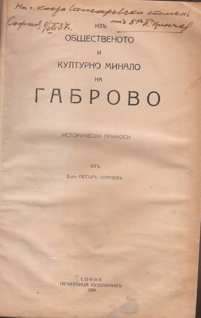 Книгата е „Изъ общественото и културно минало на Габрово“ от Д-р Петър Цончев Пенчев.
