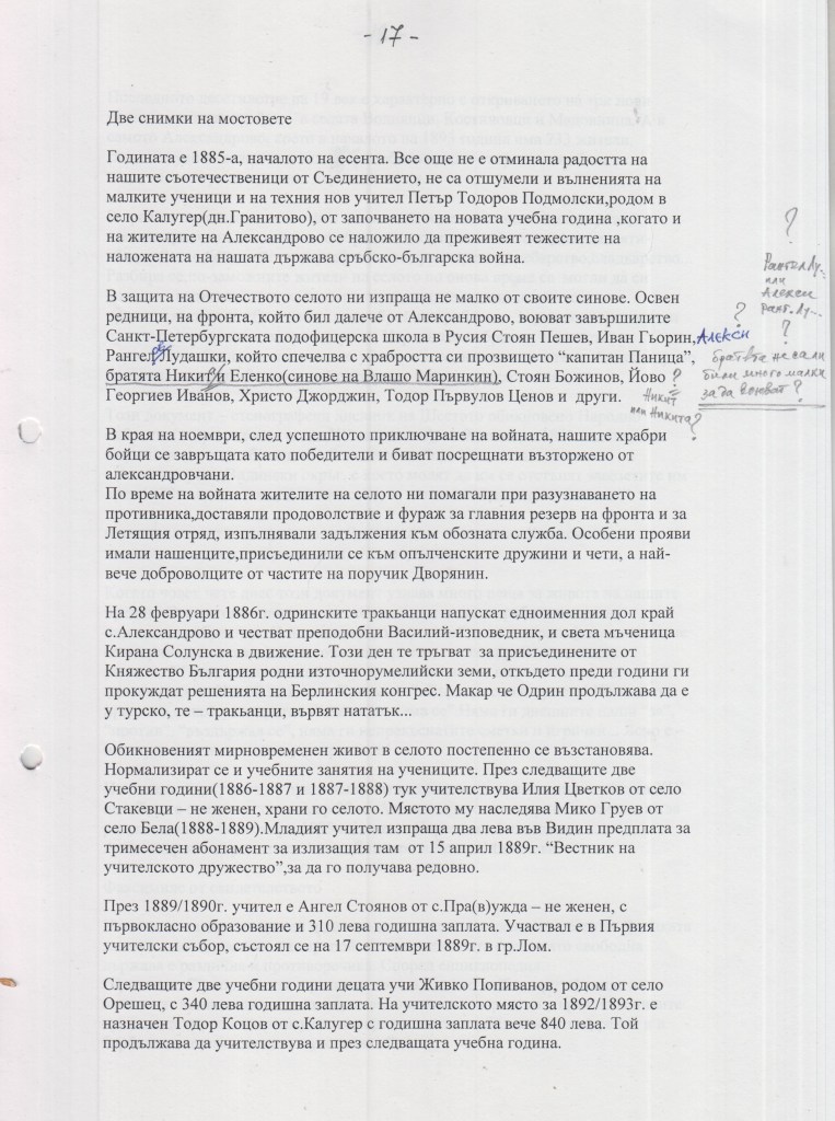 Чернова – ръкопис и снимки