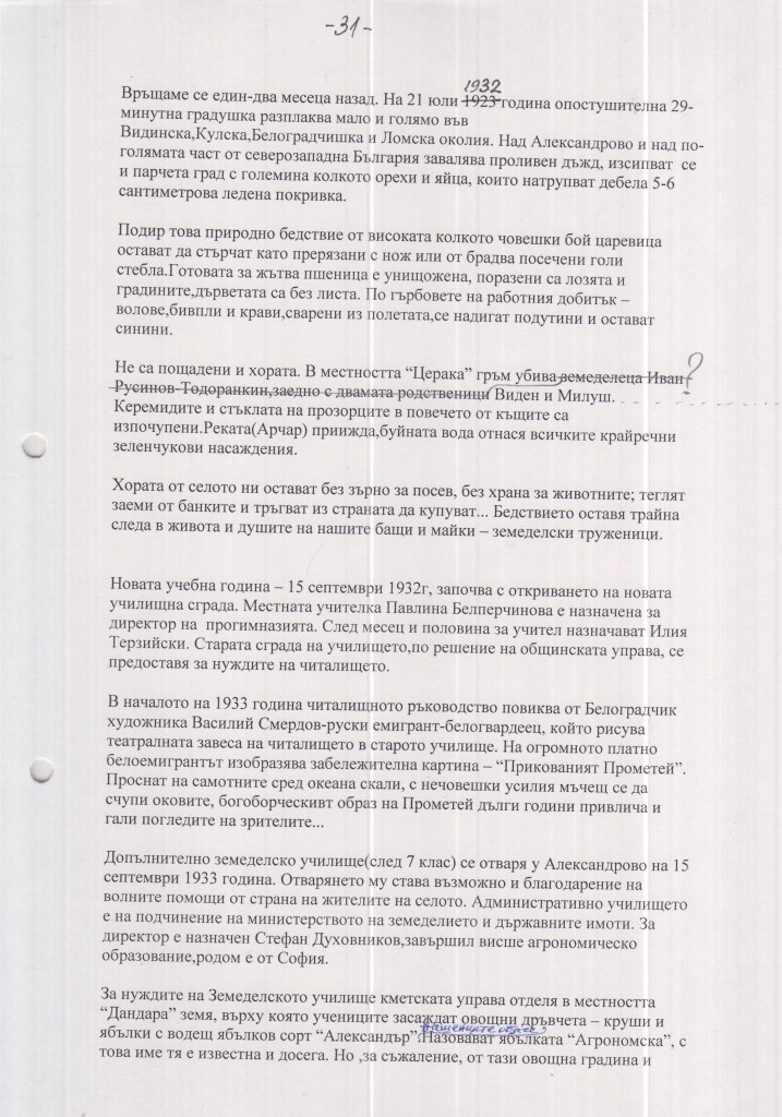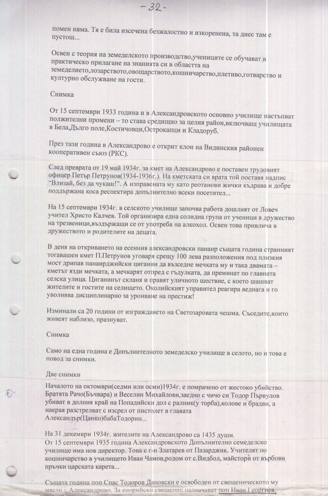 Тази история на гр.Димово се разпространява в интернет от доста години. Във варианта, който имах до сега липсваха снимките към текста. Сега вече имам и снимките към нея. Някой ми беше разказал, че Борис Костов от гр.Димово е работил върху тази история. Сега ще ви запозная с част от нея. Следва от 31 до 35 л.