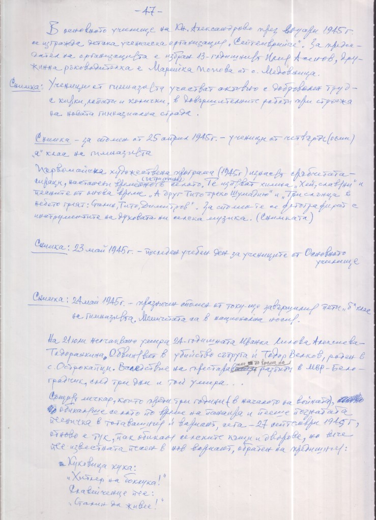 1945г. Доброволен труд в училището.