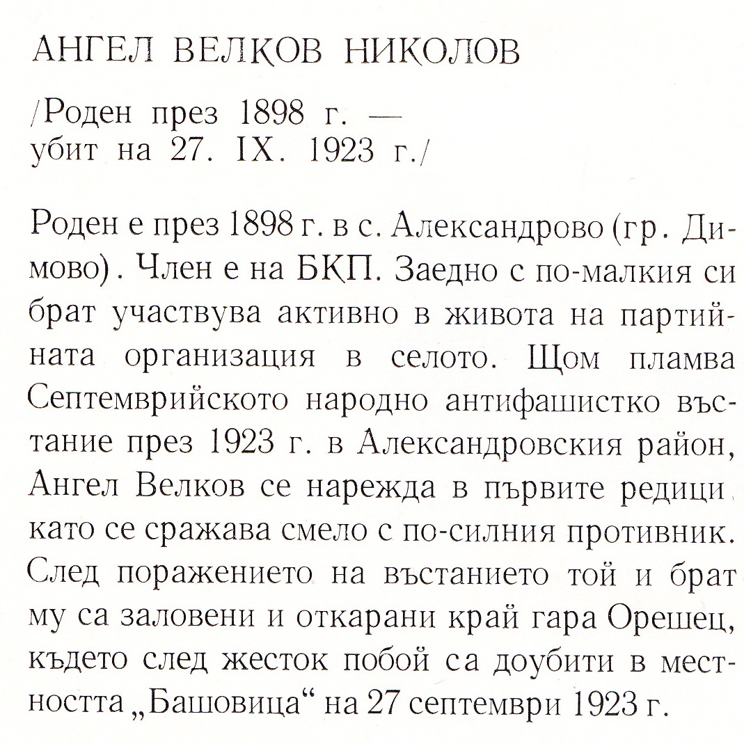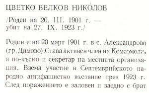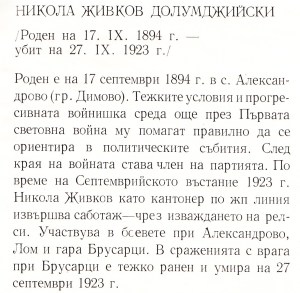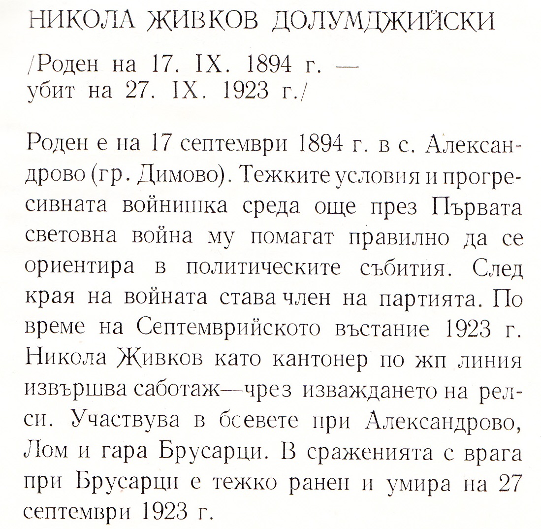 Никола Живков Долумджийски р.1894 г. с.Александрово – 27.09.1923 г. край Брусарци.