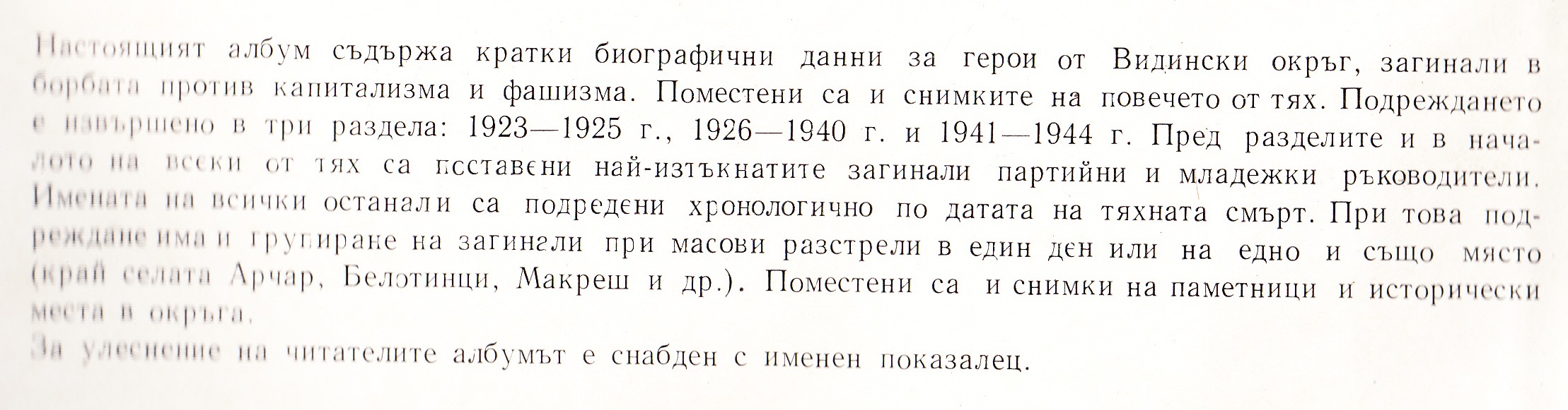 Книгата е издание на Окръжен Народен Музей и Окръжна Методична Библиотека гр.Видин 1961 година, като препоръчителна библиография.