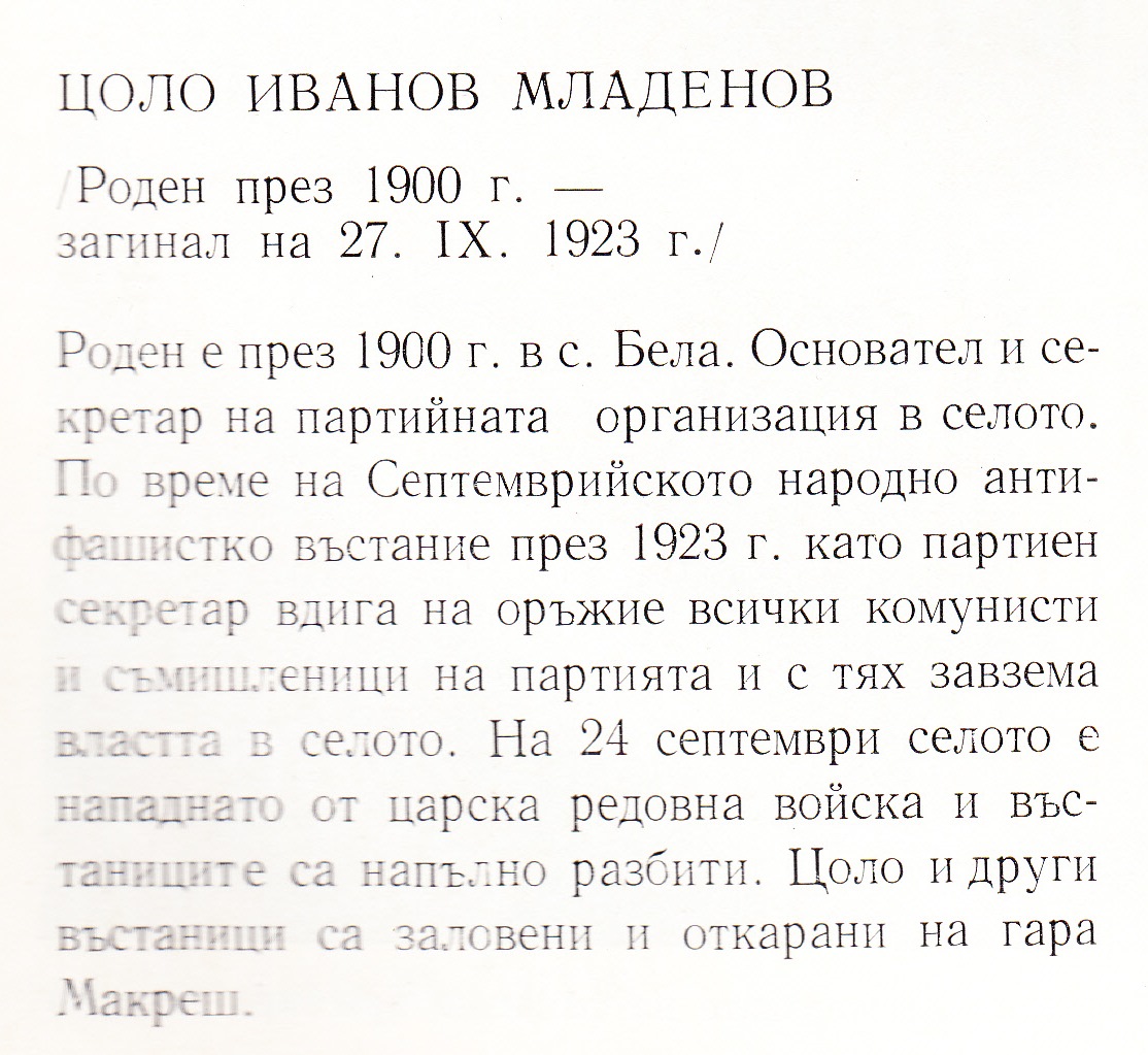 Цоло Иванов Младенов р. 1900 г. – убит 27.09.1923 г. на гара Макреш