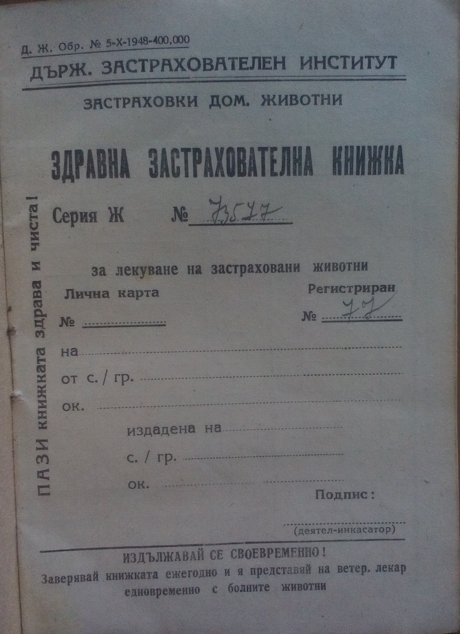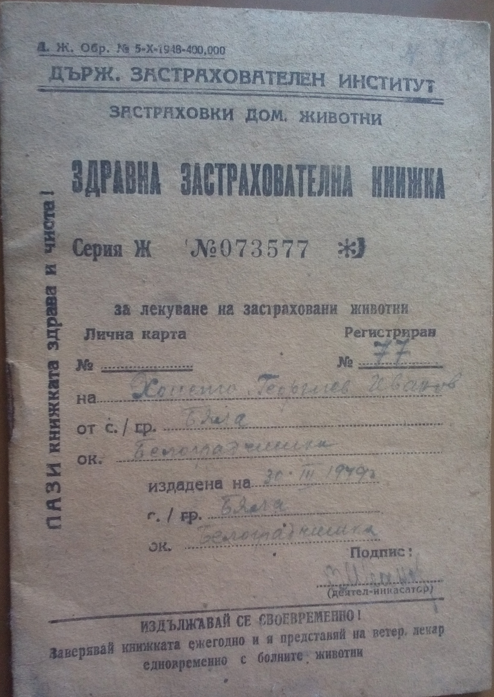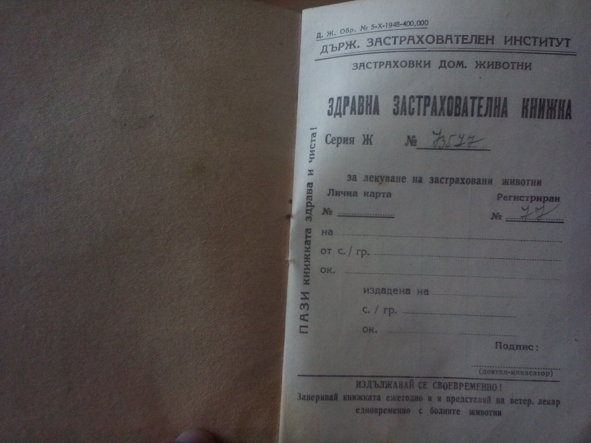 Устава е първо издание от 1934 г. и е с нанесени поправки на ръка.