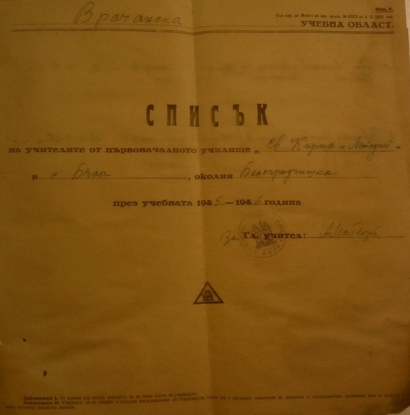 Село Бела в турските регистри. Според някой това е втората по ред регистрация, за сега не е намерена първата и от коя година е . Съкратения регистър на Видинския санджак от 1454/5г. се съхранява в Истанбулската градска библиотека /Beleoiye kutuphanesi/ и има сигнатура Cevdet yazmalari, 0.90. Той е съставен по заповед на султан Мехмед Завоевателя през годината 859/1454-1455/ същата година когато е описана пограничната област на Иса бей Исхакоглу. Дефтера е бил съставен от регистраторът Емин Мехмед б. Михаил Кочи и писарят Юсуф б.Мустафа. Написан е на писмото “дивани”. Дефтера е бил съставен непосредствено след опожаряването на Видин 1454 година. На 2 Октомври 1454г. Ян Хуниади пленява Фируз бей , разорява околностите на Пирот и запалва Видин.